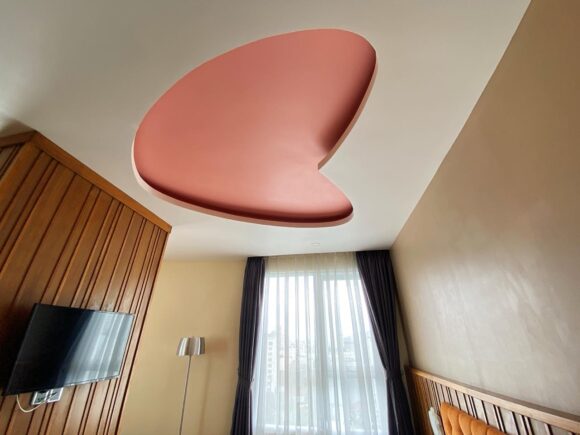 このホテル、天井に何かしらのマークが細工されてて寝る時ドーンと目に入ってかわいいねん。ここのは。。。すいz。。。