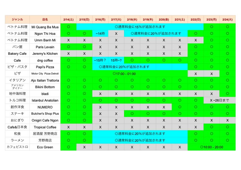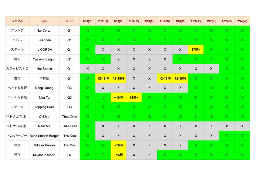 について、テト期間中でも営業しているお店の情報を、Vetterさんがまとめてくださいました!