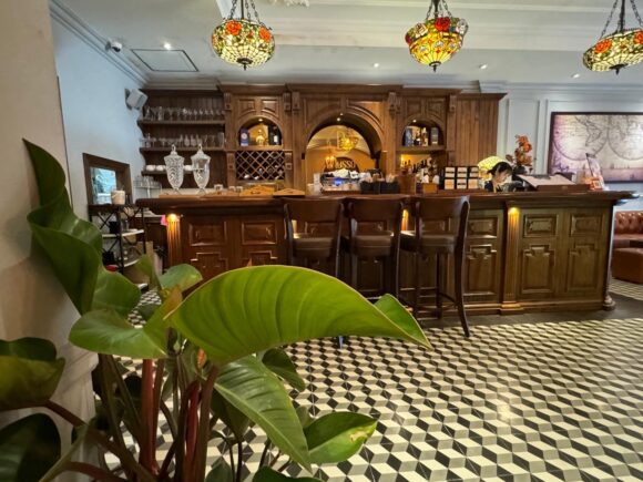 ロビーカフェにあるドリンクカウンターは小さいながらも雰囲気が良く、ステンドグラス調のランプシェードもとても素敵。