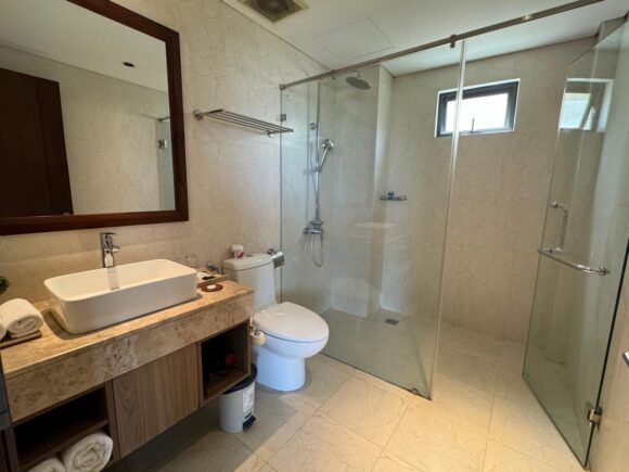 バスタブはないですが、清潔なバスルーム、また床にも滑り止めのため細かなエンボス仕様が施されてるなど、とても行き届いてるなと感じました。