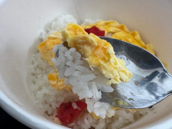 卵にはほんの少し塩味がされている感じでしたが、卵自体の味がしっかりしているのかおいしかったです。そしてお米もしっかりおいしかったので、何か卵とご飯だけで3口ぐらいパクパク食べてしまいました(笑)