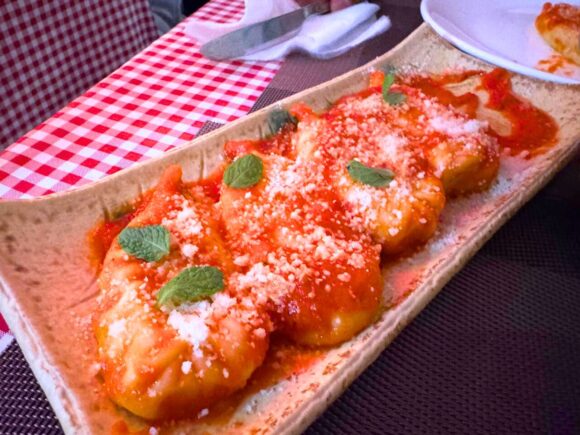 日本語って機に発音すると、クルルジョネス、というパスタ料理。中にポテトを忍ばせてるそうで、ニョッキとラヴィオりの合いの子みたいな感じの料理。