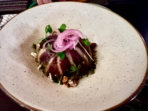 実にエッジーだったけども安定感も同時にあると言おう、高いスキルがないと出せないお味のダックだった。うんまい。満足。ワインぐびぐび。