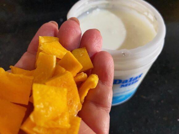 私、生のマンゴーはそんなに頻繁に食べてないけど、ドライマンゴーをヨーグルトに入れてふやかして食べるのが大丈夫だから気をつけないと😅