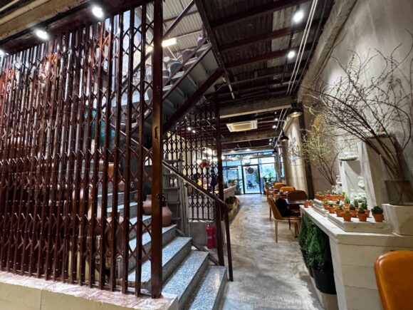 表通りじゃないのですが、こんなカフェがこのエリアにあったとは。印象的な入り口と、お店に入ってみると思いの外広い空間。ここはゆっくり落ち着けるかも!