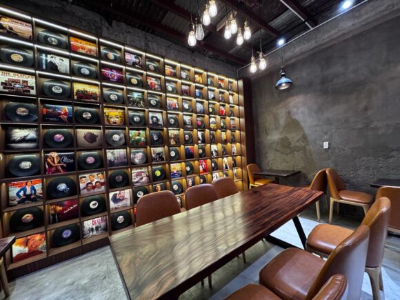奥の方にはレコードジャケット?がたくさん飾られてて素敵。