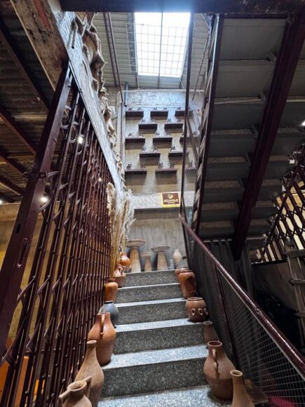 奥の方から振り返ると、2階に上がる階段のところがとても印象的な仕立てになってたのよね。