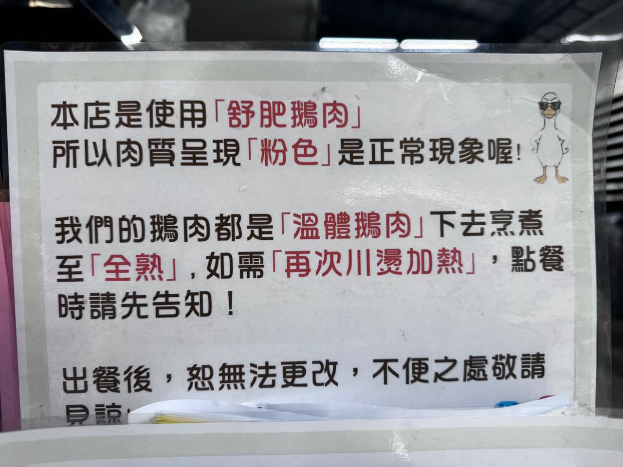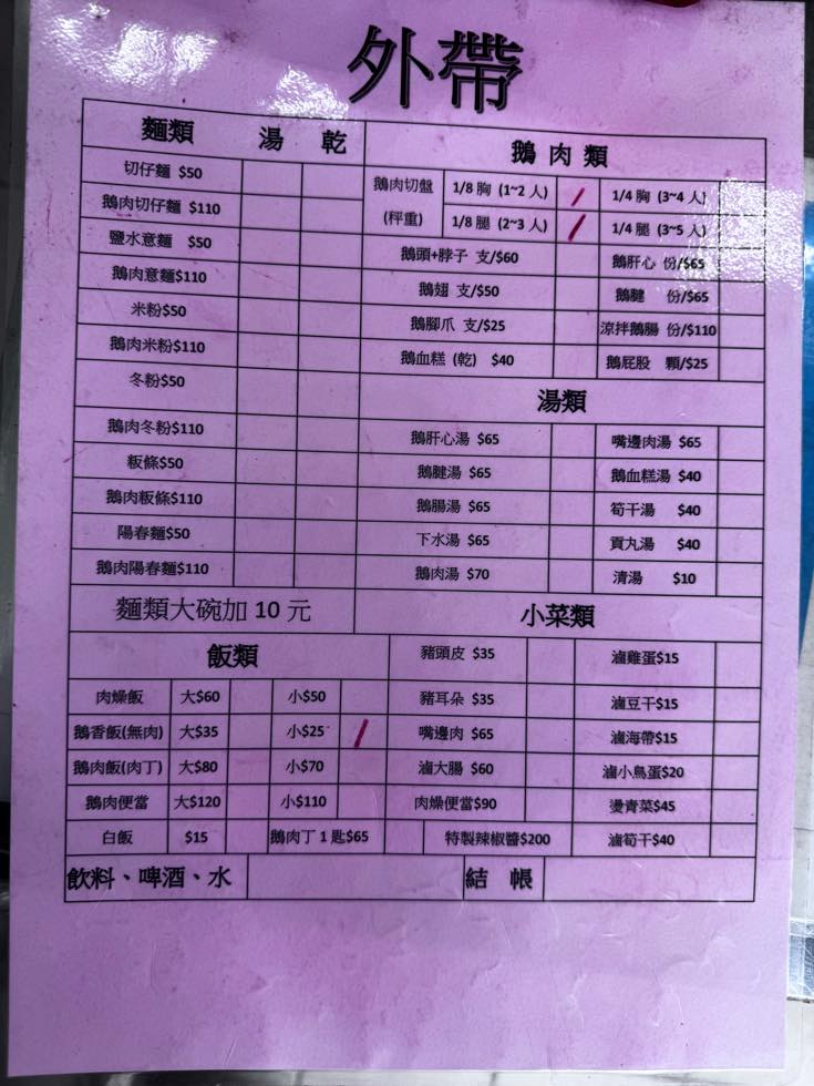 普通にここで一食食べていくなら、鵝肉=ガチョウとか、鶏肉って書いてるものの中から好きなもの+飯、とか麺、とかで選んでください。