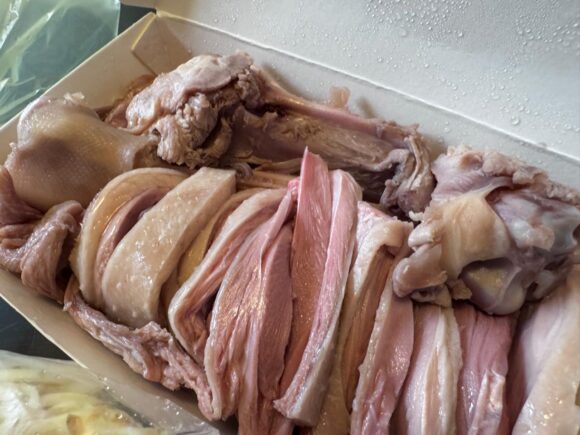 でも、特に腿=もも肉は2〜3人分もあるという。両方頼んだら、3〜5人分くらいということになるので、そんなの結構な量になるって考えればわかるのに。。。