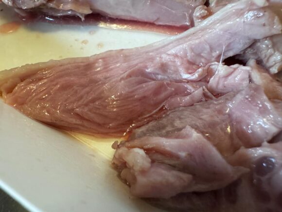 胸肉よりもさらに繊維が立ってる感じですね。