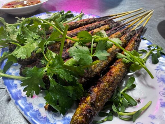 Ca Keo Chien(揚) / nuong(焼)ってのを選んだら、写真にあるような感じで焼いたものが出てくる。