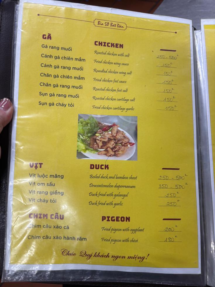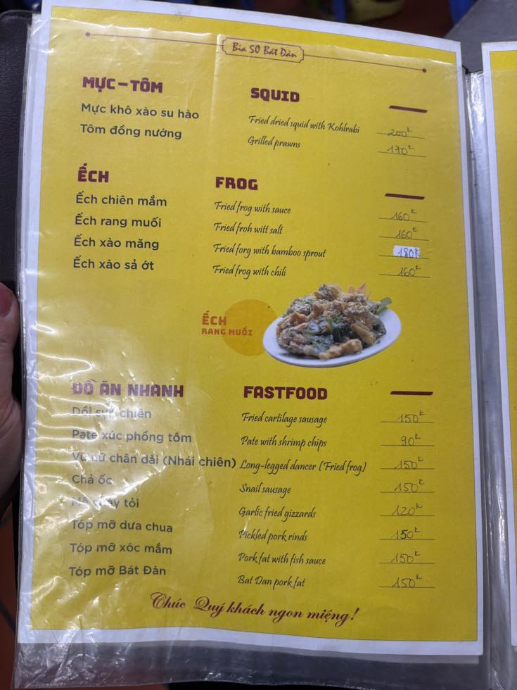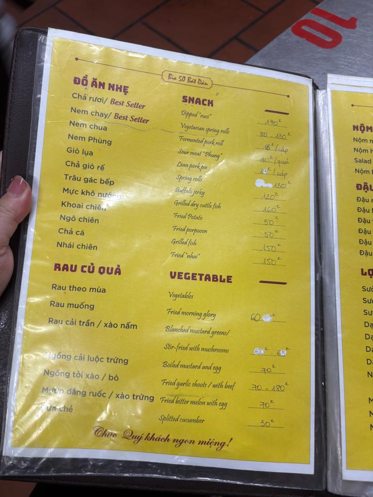 メニューくらいのベトナム後ならそこそこ理解できるのですが、南部と北部では単語が違ったりするので、ちょっと腰が引け気味になるんですが、英語があればだいぶわかるw