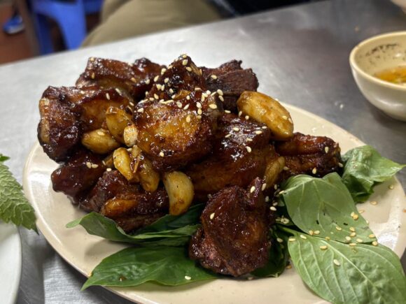 ヌクマムに甘みをつけた甘辛だれ=旨みタップリの甘辛ダレが染みるように絡むように肉を彩る。