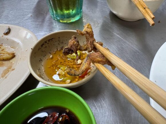 市場でカエルを買おうとすると、皮剥がされることがあるんだよな。あの黒い皮が揚げられて香ばしいのが美味しいのに。