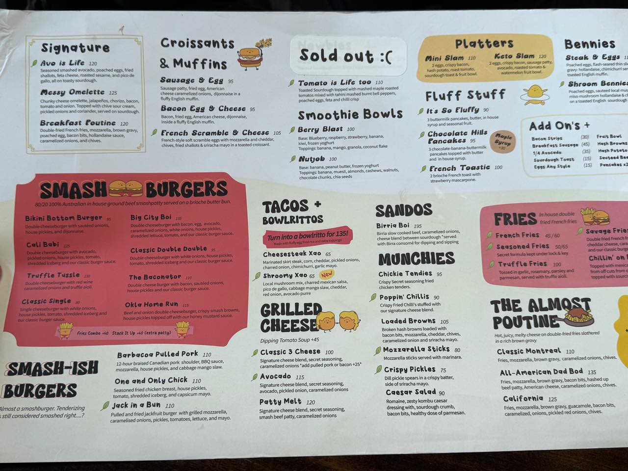 シングナチャーは朝食に良さそうなアヴォカドトーストやオムレツなどなど。