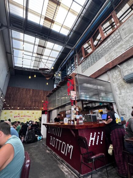 外に出て改めて見てみると、今回私たちが入った右側の真隣に、ちょっと外観は違うけど、Bikini Bottom Expressのロゴが。