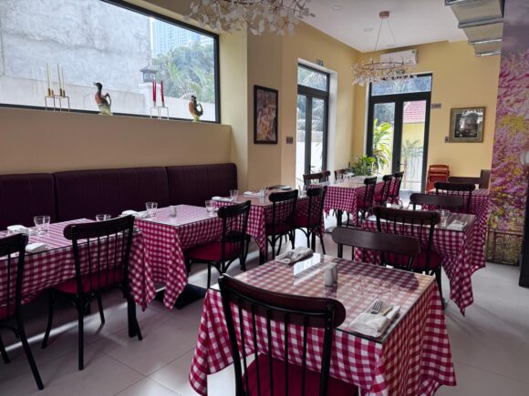 そこで絵使われてた赤と白のギンガムチェックのテーブルクロスは、安くて美味しい家庭的な料理を出す店の代名詞にみたいになったんだとか。