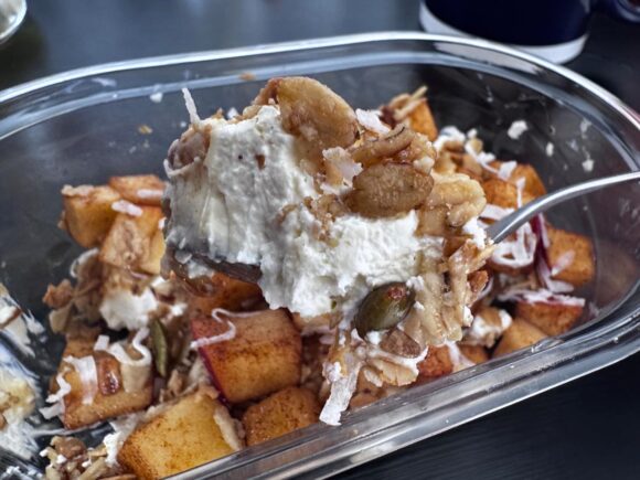 グリークヨーグルトに、いろんなトッピングチョイスがあって、今回はアップルシナモンにしまいstあ。