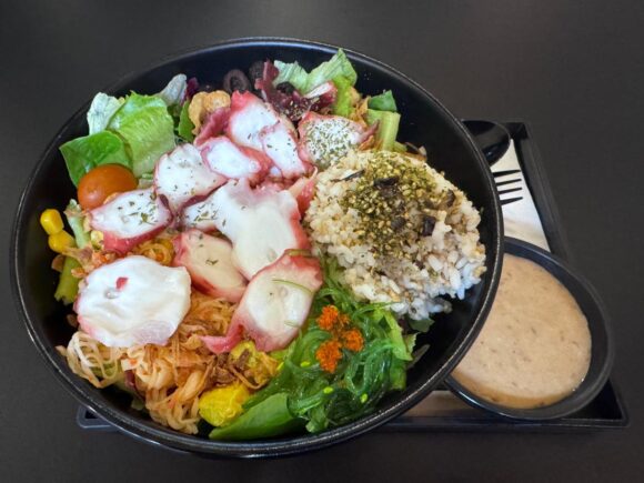 ベースは同じくしながら、サラダスタイルとPOKEスタイル(米あり)にしてて、セットアップを掲げつつ、追加であれこれトッピングを追加することも可能、という感じ。