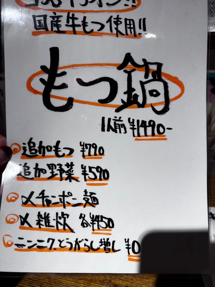 そしてなんでもありな雰囲気で、さらにはもつ鍋もあるじゃないか!