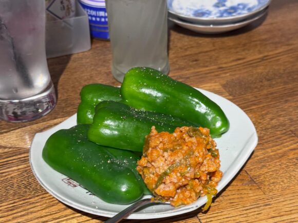 肉味噌とピーマン