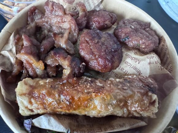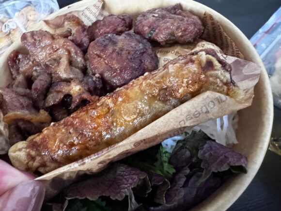 わー!お肉も揚げ春巻きも乗ってるぞ!