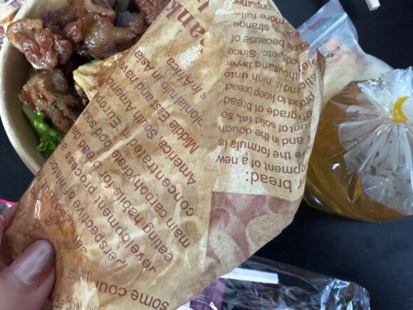 そして、お肉や具材の下には一枚ペーパーが咬まされてて、その下が麺とハーブ。