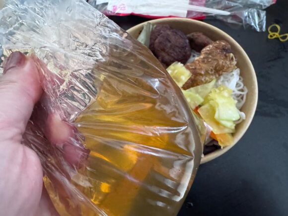 北では、小丼くらいの大きさの器にタプタプ、このあっさり目のタレが入ってるのですが、ホーチミンでは、本当に小さな小さなお椀に、この1/2 か、それ以下の量が入ってるだけです。