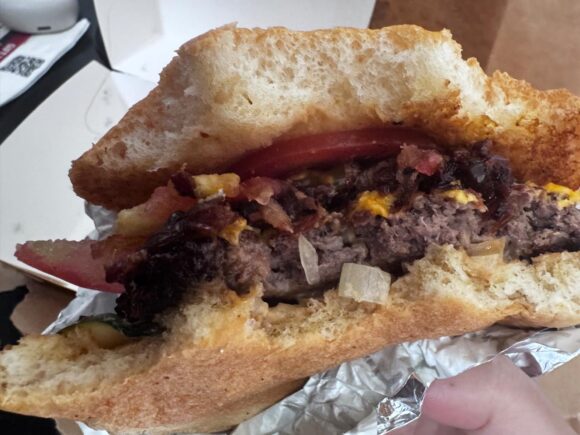そしてスマッシュなので、肉がワジワジしてそうだし、実際表面縁の部分はガリガリしてるんですが、なぜか。。。