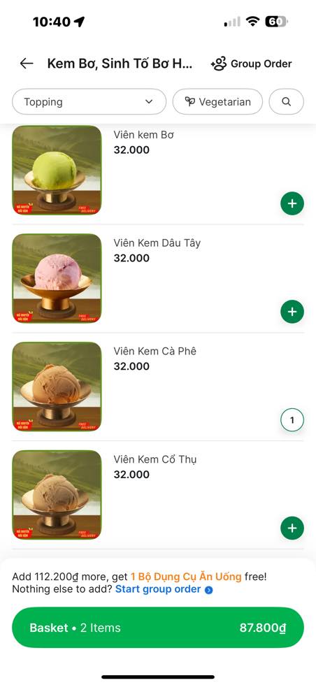 アボカド味とは関係ないけど、アイスクリーム自体の味も確かめたくて頼んでみた。それならバニラだろう?て話なのですが、ベトナムコーヒーアイスクリームもおいしいのが多いですよね😁