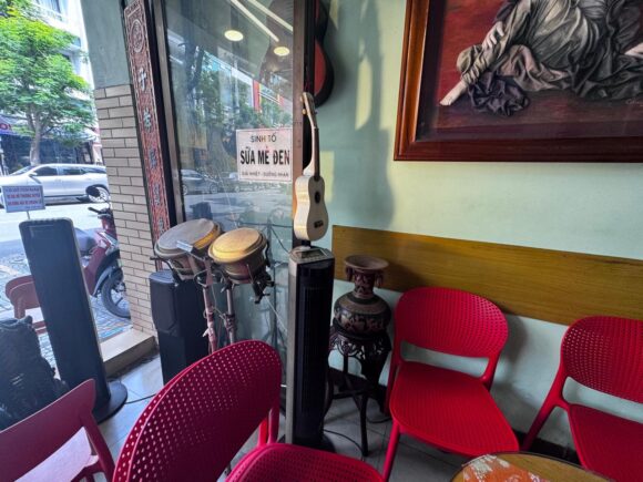スピーカーと一緒に置かれてる楽器もあって、もしや楽器類は実際に使われてるものなのか?ライブとかもやってるのか?と思ったら、仙人のような店主のおじさん、色々と楽器を演奏されるそう。