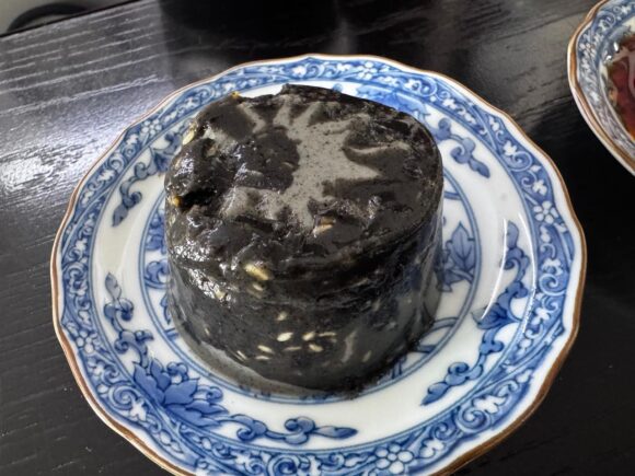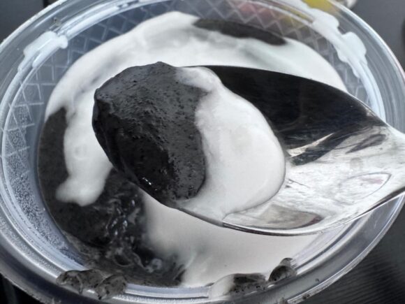 見た目がなんだか禍々しいですが(笑)、先ほど、美味しい黒胡麻のお汁粉的なものをいただいたので、あまり抵抗感なくいただけます。