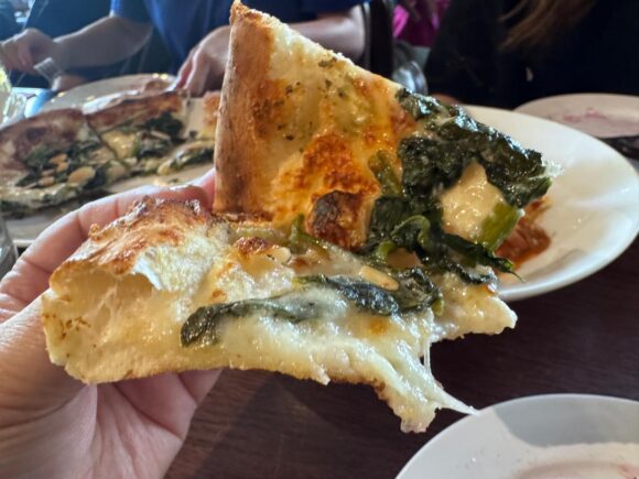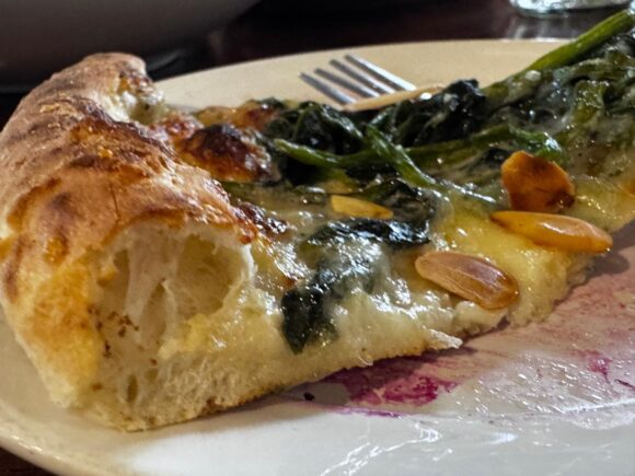 まあここはそもそも記事が素晴らしいので、ピザの美味しさの半分は保証されてるわけですが、ほうれん草。。。なんだよその弱っちそうなの、とか思いません?