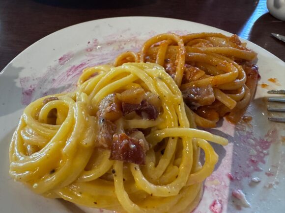 アマトリチャーナとカルボナーラを同じお皿に乗せる幸せ。。。