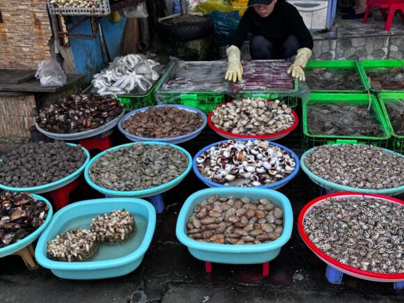 日本では1シーズンにこんなに多種類の貝が揃うことが珍しいので、ベトナムの貝を見慣れない方には珍しいかも♪