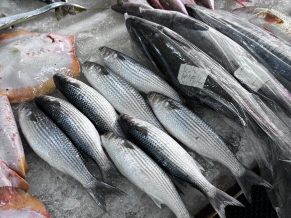 入り口から、向こう側の出口が見通せるくらいの距離しかない音ですが、それでも両側に並ぶお魚屋さんの見応えは十分!