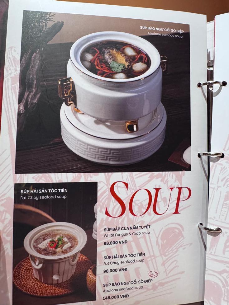 なんかちょっとお高そうなスープがあったのですが、価格はそんなに高くなかった。一番高い鮑が入ったものでも、148k。(多分トコブシと思われるけど(