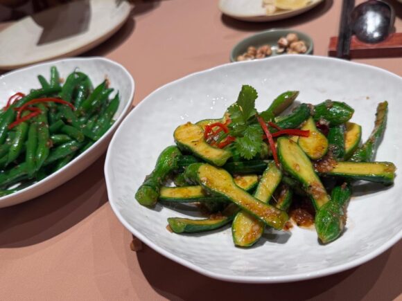 かぼちゃとは言え、この段階だと、かぼちゃのねっとりした感じは全然なくて、どっちかと言うとシャクシャクとした雰囲気。それをシンプルにガーリック炒めにしていて、食べやすく、かつおいしい。