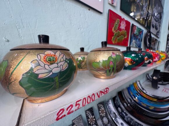 ベトナムの典型的なお土産品の中に、漆器があります。お土産物屋さんなどでもよく並んでるのですが、こちら、結構古くからあるらしい専門店!ですが結構お安め!