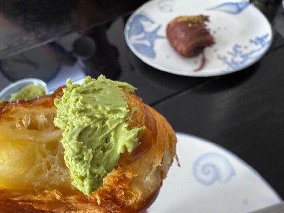 クロワッサン、何種類かあったんですが、なんとなくピスタチオへ。