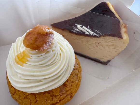 で、パンも食べたかったのだけど、この日最もたくさん並んでたのはチーズケーキ。一応バスクチーズケーキって言ってたかな。