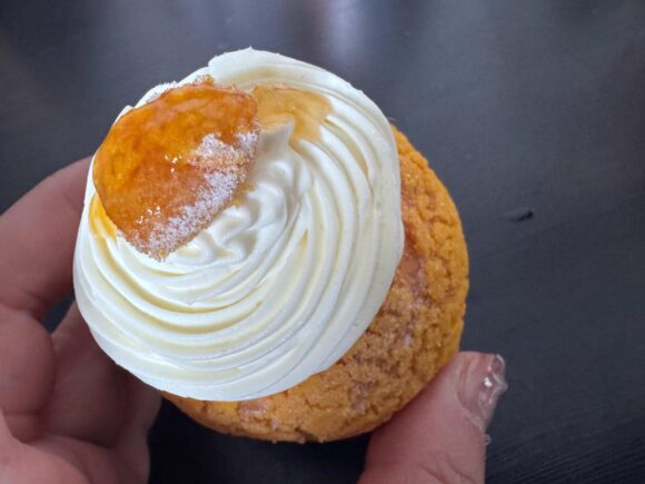 で、嬉しかったのは、中のクリームがたっぷりってこともあったけど、さらにその中心部に、ソースが仕込んである!え、これは嬉しい!