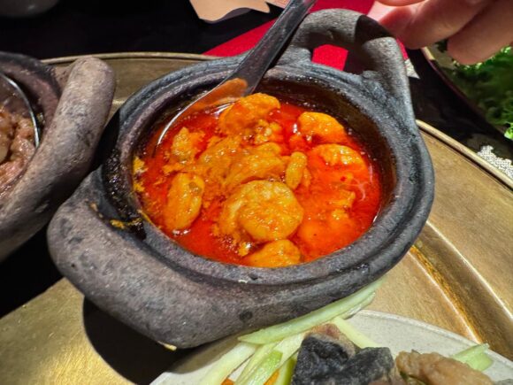 エビの方も、辛そうに見えますが、割と穏やかな味わい。でも素材の旨みはしっかり引き出してて、ご飯と合う合う!