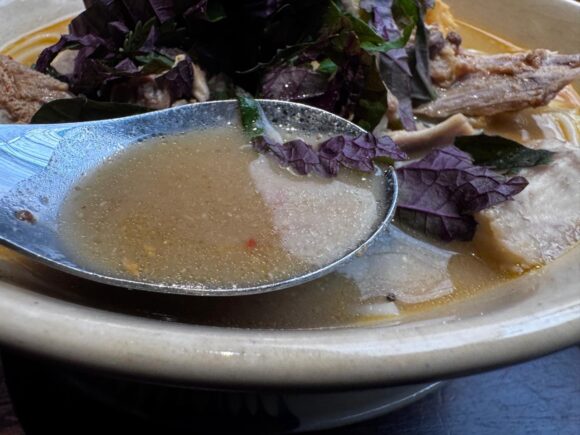 なので、このスープもとても優しい。物足りないわけじゃないけど、塩は控えめ、旨みで満たされてる感じ。かなり諸味的な味でもあるのだけど、品すら感じる楚々とした旨みだ。