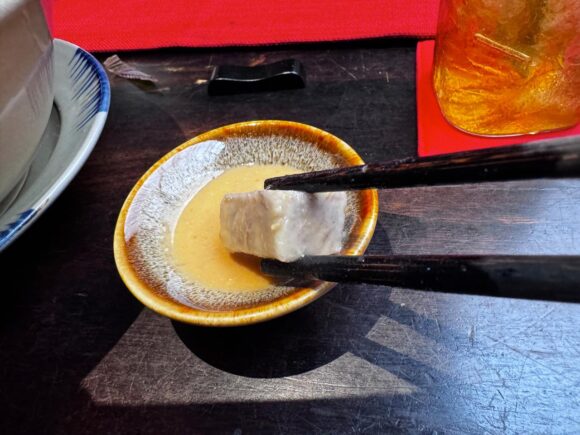 ので、添付の腐乳ソースに、時折ディップして具材をいただくわけです。