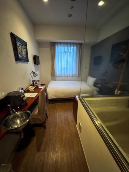 今回は結果的にダブルベッドが入ってるお部屋となりましたが、お部屋自体はそんなに広くなく、おひとり様用といった感じ。