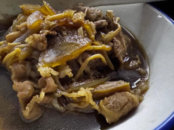 牛丼的な炊きものにしても、浮いた脂を少し取り除くぐらいでいいかな。脂身が多いと言うわけでもなく、脂の質がしっかりめなのかも。