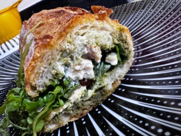 このサンドイッチに使われていたチーズらしきものも、クリームチーズとかではなく、おそらくはヴィーガンチーズのはず。