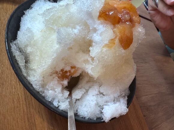 そしてこちらは、桃を発酵させたシロップをかけたかき氷。