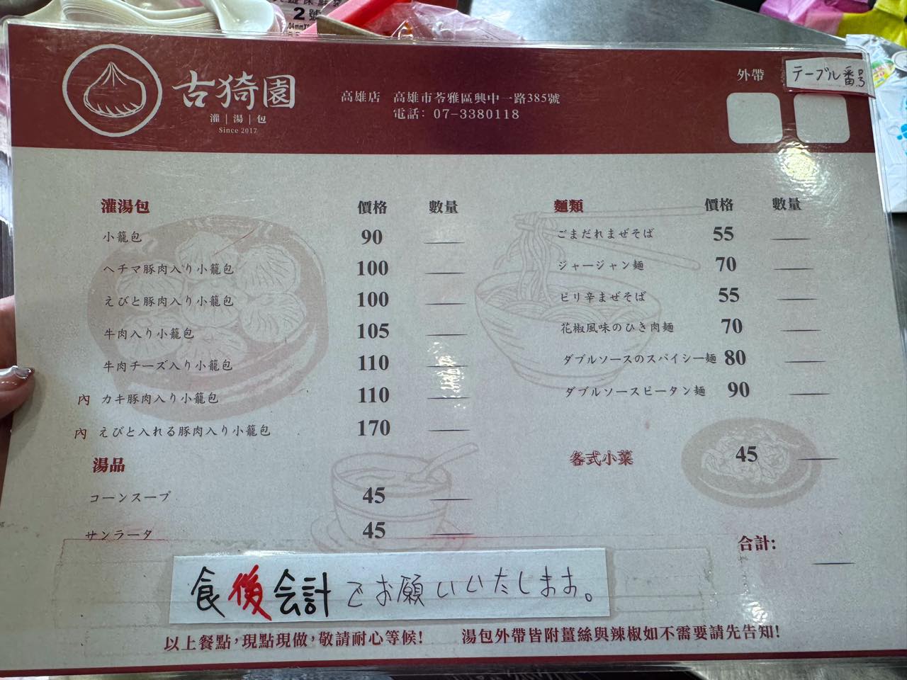 特に台湾のようにお店によってお支払いが先だったりあとだったり、まちまちなことがある場合は、こういう表記があってくれるとありがたい。
